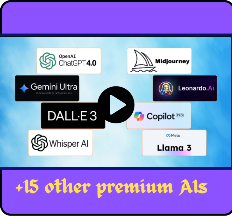 Get Unlimited ChatGPT 4o Plus, Google Gemini Ultra Advanced, DallE HD, Whisper AI Text-to-Speech, Midjourney Mega, Microsoft Copilot Pro, Leonardo AI Pro, Meta Llama 3.1 and 22 Other Premium AIs For A Low One Time Price